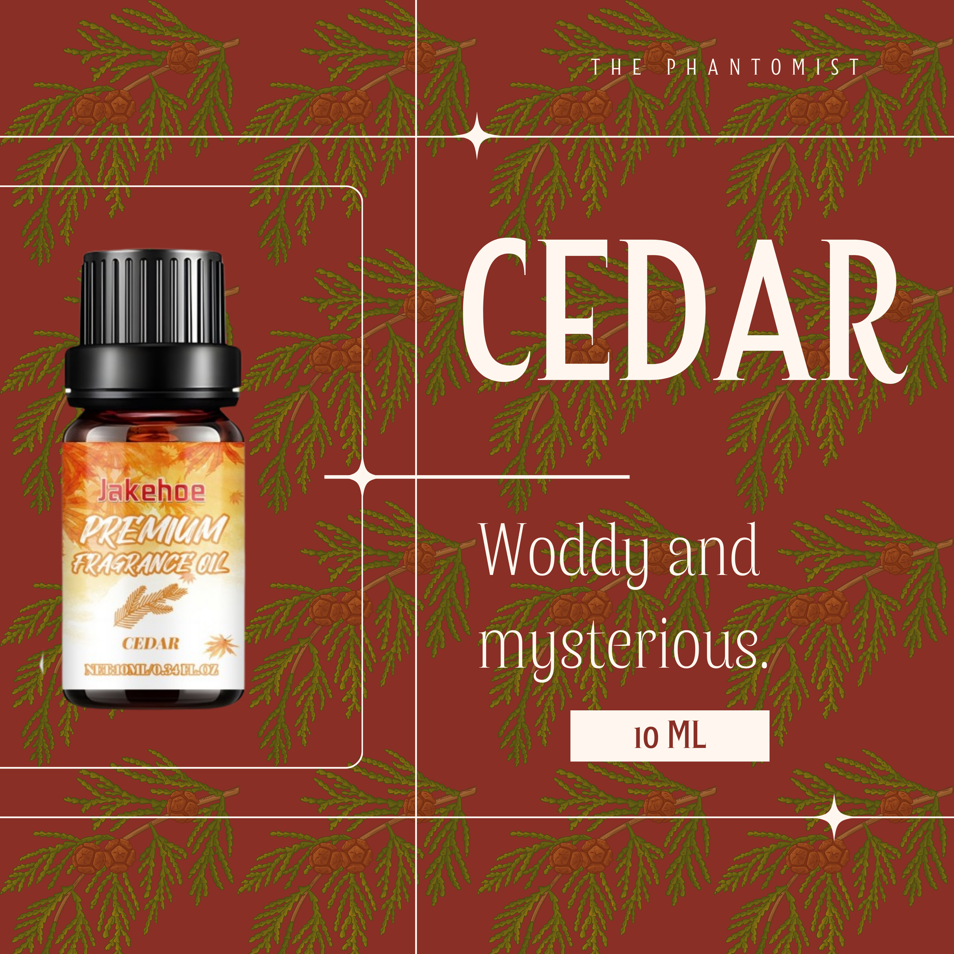 - Cedar — Dry forest: Atlas cedar, sandalwood, cypress, touch of patchouli—clean, resinous, soothing.